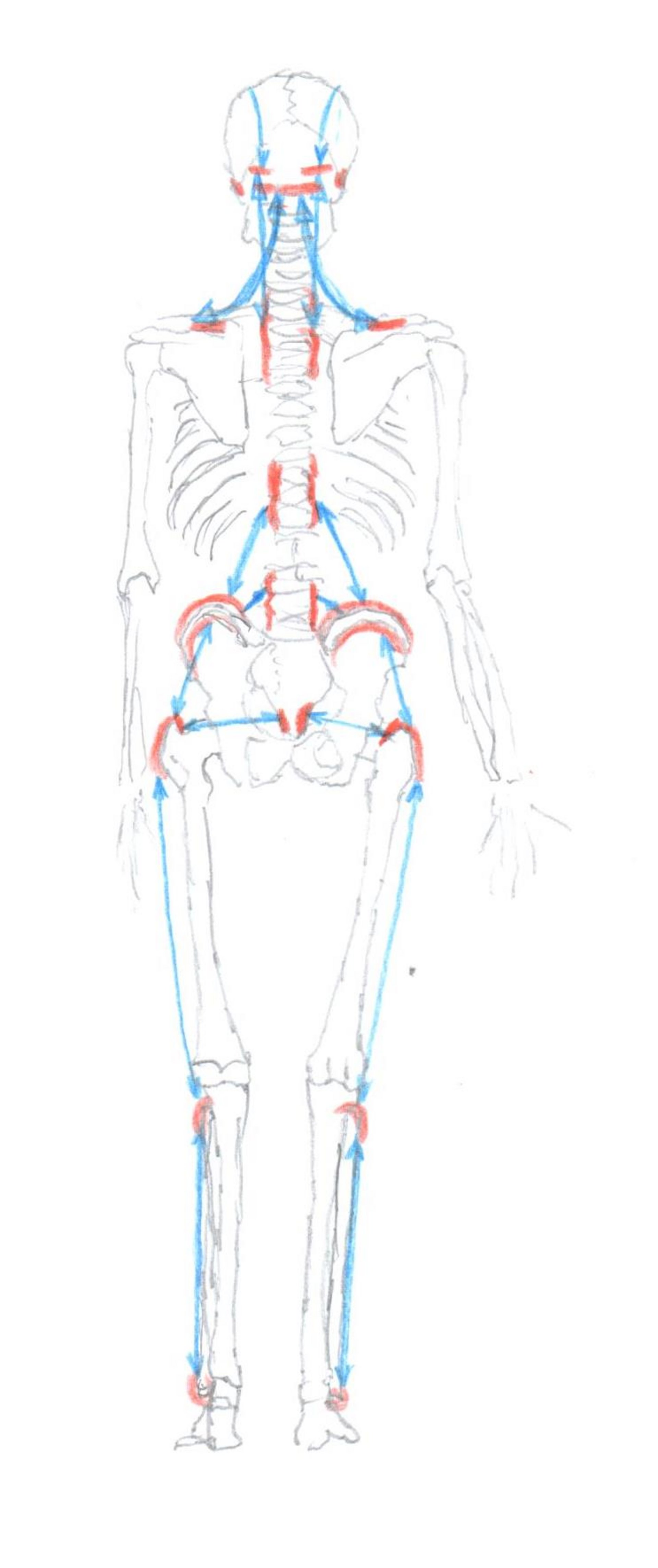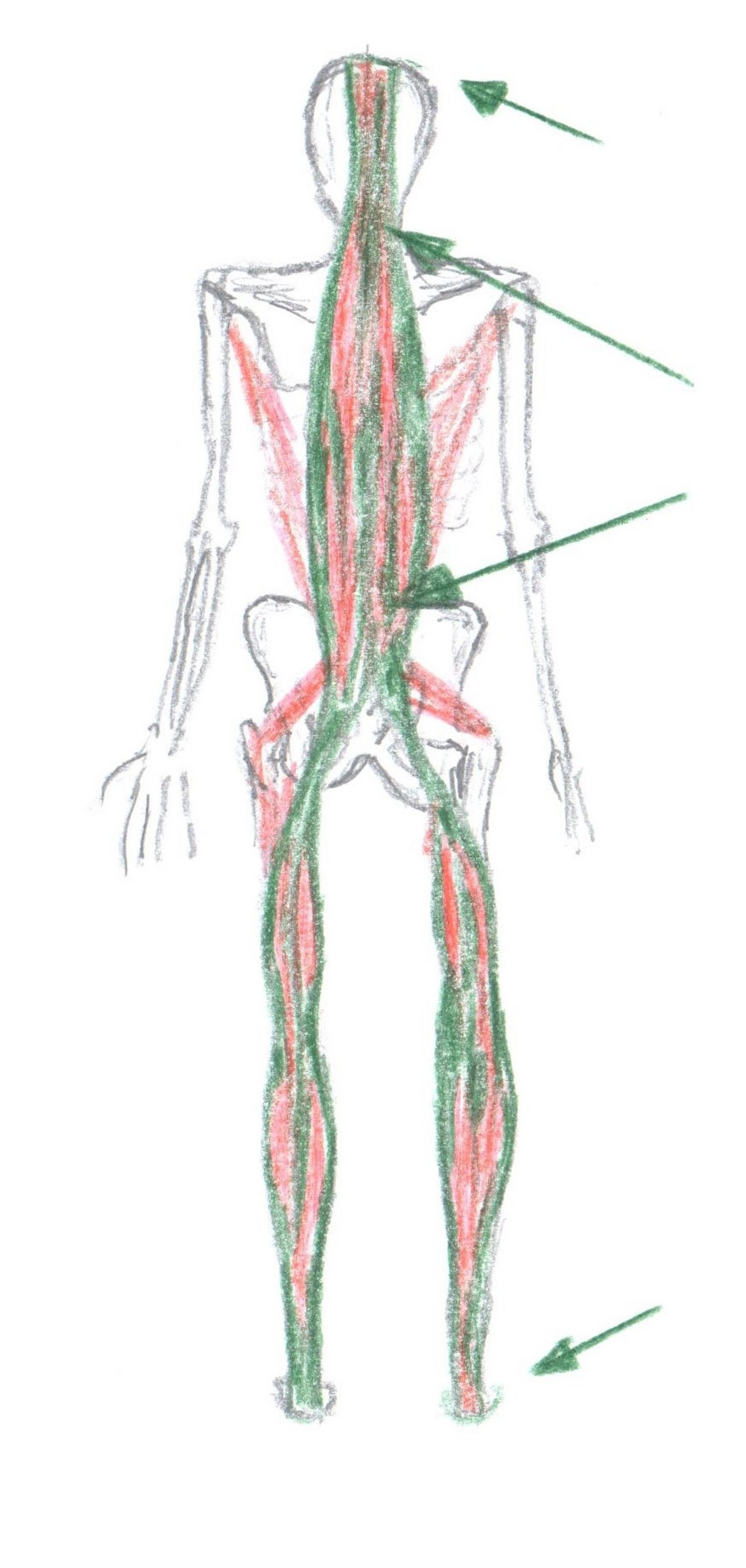 Muskeln nehmen von überall Spannungen auf. Wir therapieren und massieren mit Gefühl die Muskeln. Muskeln sind für die Bewegungen zuständig. Im Vergleich dazu ermöglichen Rückenfaszien das aufrechte Stehen und Gehen. Sie verlaufen durchgehend von Kopf (Stirn) bis Fuss. So wird sich z.B. ein Schlag oder Verletzung an den Füssen mit der Zeit in den Rückenmuskeln als Verspannung oder chronische Schmerzen auswirken, weil die Faszien die Kräfte übertragen.